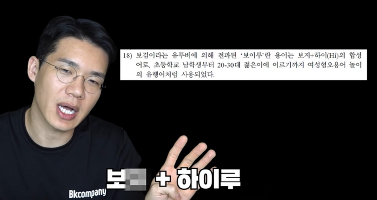 해당 논문은 '보이루'라는 용어를 "보X+하이(Hi)의 합성어로, 초등학교 남학생부터 20~30대 젊은이에 이르기까지 여성 혐오 용어 놀이의 유행어처럼 사용됐다"고 적었다.