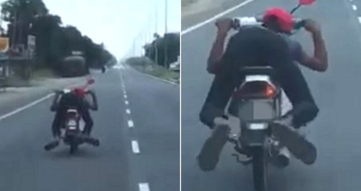 매체에 따르면 이날 오후 오토바이 운전자는 헬멧을 착용하지 않은 채 안장에 엎드려 누운 자세로 도로를 달렸다.