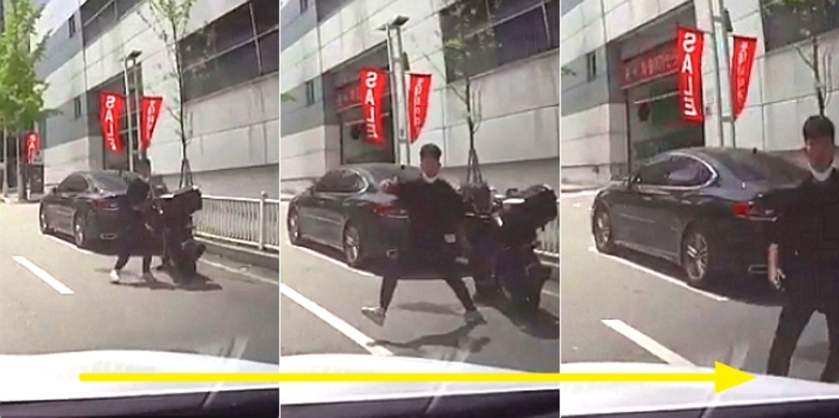 배달 기사의 행동에 운전자는 화들짝 놀라 차량 속도를 줄였다. 다행히 사고는 나지 않았지만, 자칫 큰 사고로 이어질 수 있는 행동이었다는 점에서 비판이 쏟아졌다.