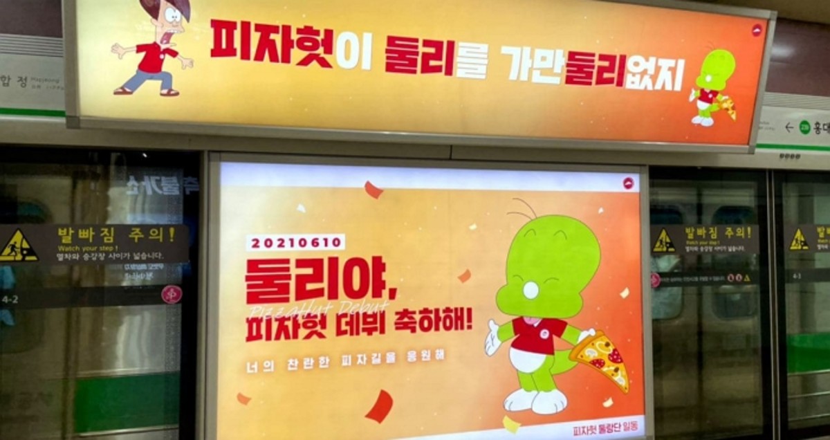 이번 캠페인은 피자헛과 둘리가 30년 넘게 오랜 시간 사랑받고 있다는 공통점을 통해 소비자들에게 더욱 친숙한 모습으로 다가가고자 진행하게 됐다. 피자헛은 오는 7월 24일까지 홍대입구역에서 '아기공룡 둘리'의 주인공 둘리가 등장하는 지하철 스크린도어 광고를 진행한다.