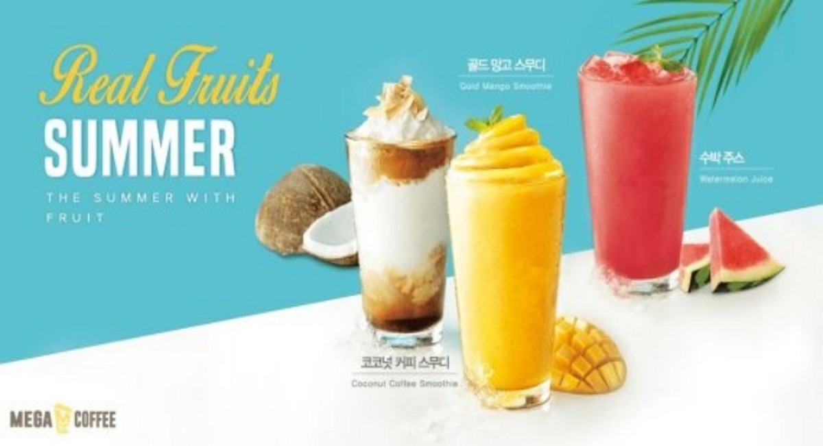 메가커피는 수박 주스, 코코넛 커피 스무디, 골드 망고 스무디 총 3종의 과일 음료를 여름 시즌 한정으로 출시한다.