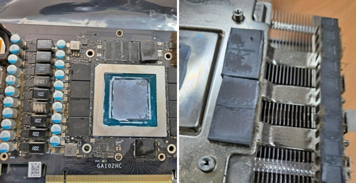 사진 속 그래픽 카드는 고열로 인해 서멀 패드의 유분이 흘러나와 심각하게 오염이 된 상황이었다.