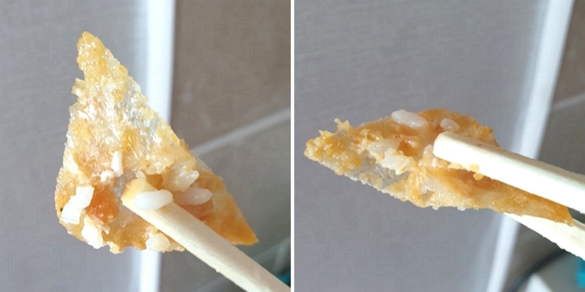 A씨는 "치킨 담는 봉지를 자른 조각을 같이 튀긴 것 같다"라며 황당함을 감추지 못했다.
