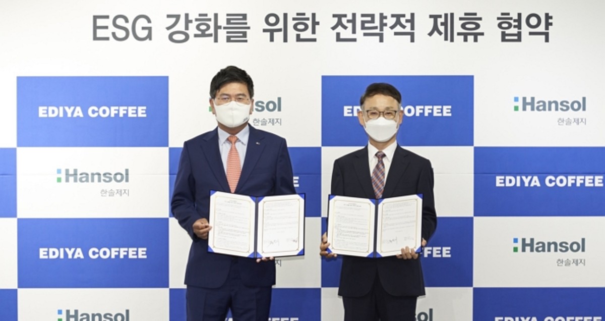 [인사이트] 조세진 기자 = 이디야커피는 28일 본사 사옥에서 한솔제지와 친환경 사회 실현을 위한 업무협약식을 진행했다고 밝혔다.