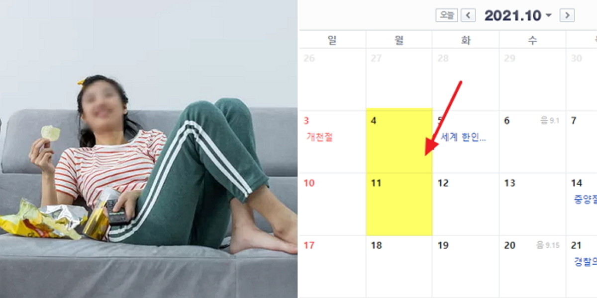 올해 10월 4일과 11일이 '빨간날'이 된다. / 네이버달력