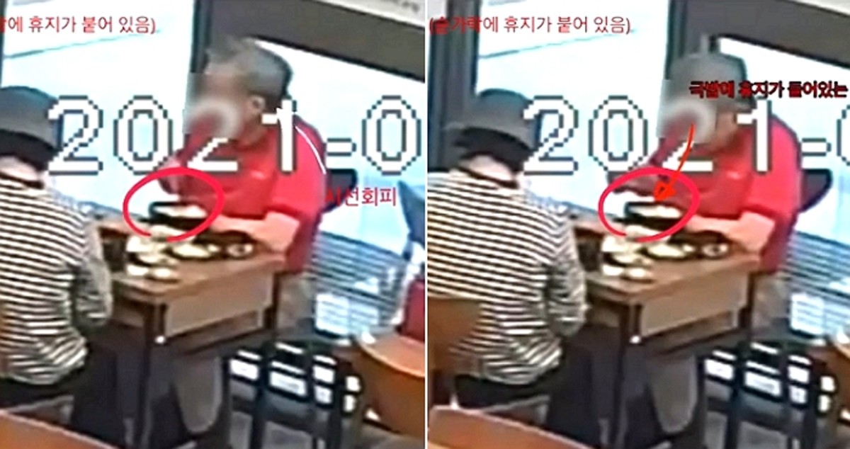 CCTV를 확인한 건 그다음이었다. A씨는 "매장 CCTV 녹화를 수십차례 재생해보니 고의로 다 먹은 국밥에 냅킨을 넣은 뒤 눈으로 확인하며 자기 입에 넣는 것이 확인됐다"고 했다.