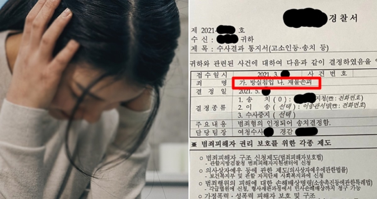 A씨는 이 글을 쓴 이유에 대해 "가해자가 성범죄가 아닌 재물손괴죄와 방실침입죄로 기소됐다는 거다"라고 밝혔다.
