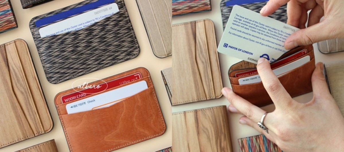 알베로는 20-25g의 가벼운 무게로 기존 가죽지갑들의 단점을 보완하면서 클래식 하고 미니멀한 디자인으로 친환경과 멋, 실용성까지 모두 잡은 것이 특징이다.