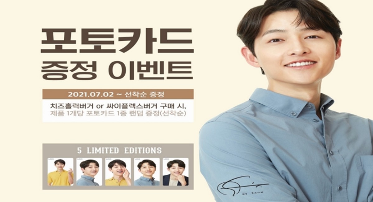 [인사이트] 조세진 기자 = 맘스터치는 상반기 히트 메뉴인 '치즈홀릭버거'와 '싸이플렉스버거' 구매 시 송중기 포토카드를 증정하는 이벤트를 2일부터 실시한다고 밝혔다.