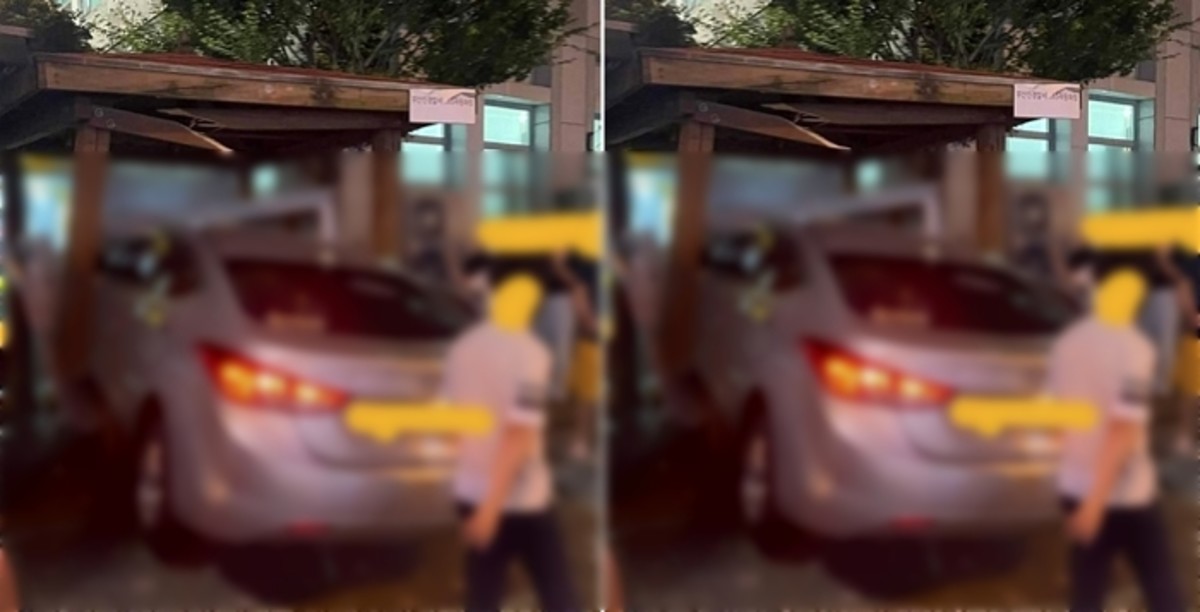 차량의 충격으로 경찰서 앞 나무 의자는 처참히 부서졌다. 또 주변에 있던 일부 철조물도 무너졌다.