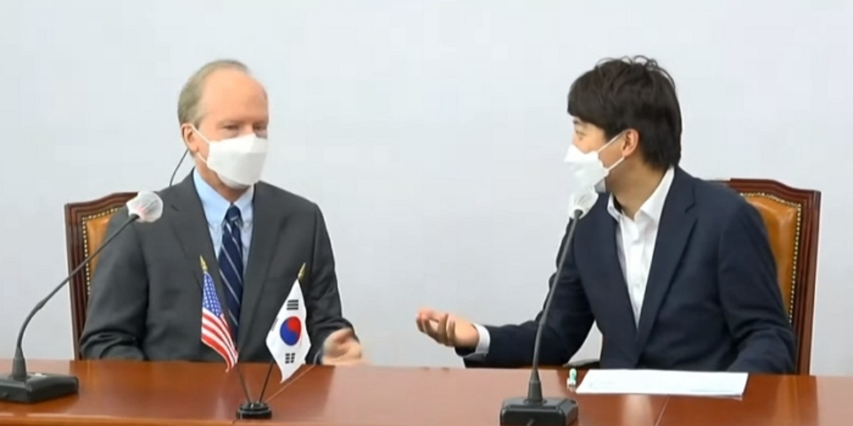 6일 국민의힘 공식 유튜브 채널 '오른소리'는 이날 이 대표와 로버트 랩슨 주한 미국 대사대리의 면담을 실시간 중계했다.