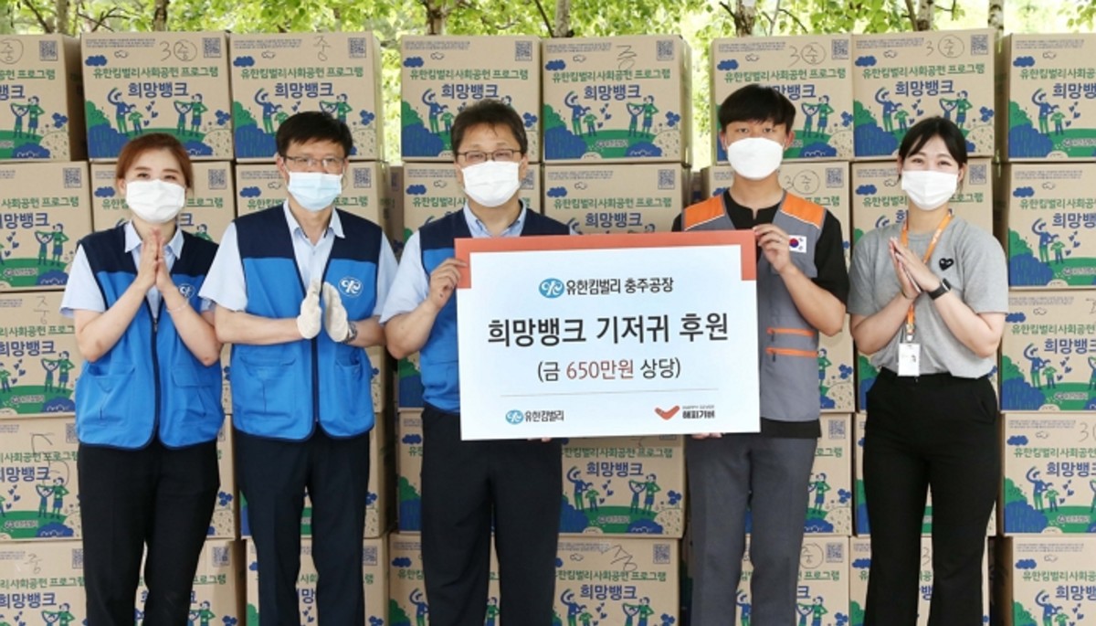 올해 유한킴벌리 하기스의 희망뱅크 지원사업은 6월 대전공장을 시작으로 하여 7월 7일 유한킴벌리 충주공장에서 임직원 30여명이 모여 미개봉 사이즈 교환 하기스 기저귀 재포장을 진행했으며, 대전공장에서는 기저귀 1,153백을 세이브더칠드런에 충주공장에서는 기저귀 1,173백을 사회복지공동모금회와 해피기버에 전달할 예정이다.