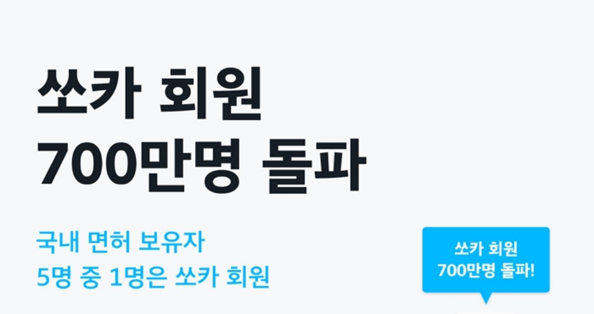 2019년 기준 국내 운전면허소지자 5명 중 1명은 쏘카 회원인 셈이다. 지난해 6월 업계 최초 600만 회원을 돌파한 데 이어 1년 만의 기록이다.