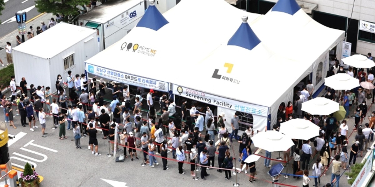 코로나 검사를 받기 위한 대기줄 / 뉴스1