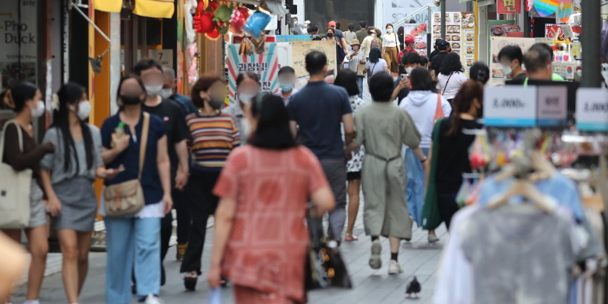거리두기 4단계 앞두고 붐비는 명동 / 뉴스1