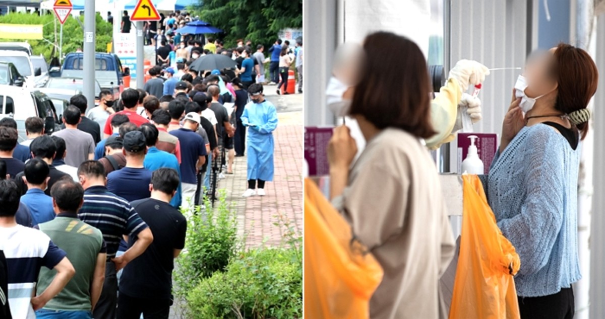선별 진료소 앞 검사 받기 위해 줄 선 시민들 / 뉴스1