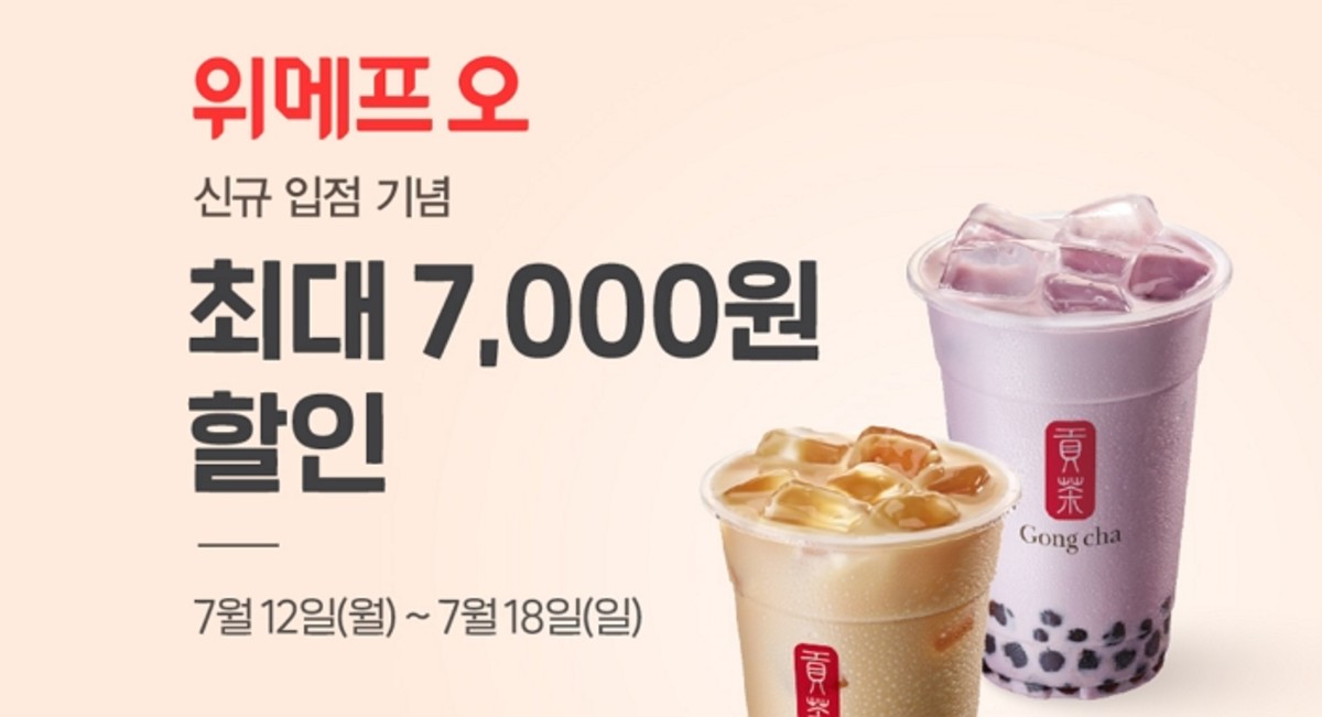 [인사이트] 조세진 기자 = 공차코리아가 공정배달 플랫폼 '위메프 오' 신규 입점을 기념해 최대 7천원까지 할인되는 프로모션을 진행한다고 밝혔다.