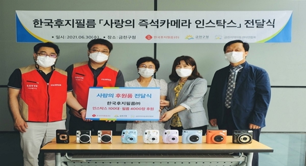 [인사이트] 전준강 기자 = 한국후지필름이 서울 금천구청과 연계하여 금천지역아동센터 연합회에 인스탁스 즉석카메라 100대와 필름 4,000장을 기부하고 지난 30일 전달식을 가졌다고 밝혔다.
