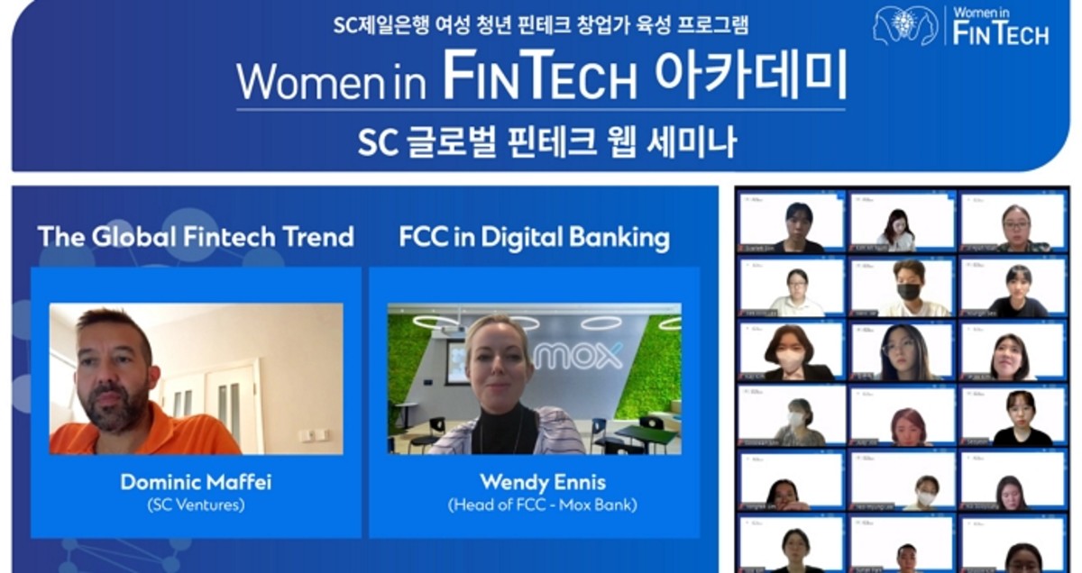 [인사이트] 유진선 기자 = SC제일은행은 지난 9일 사회공헌 프로그램인 'Women in FinTech 아카데미(이하 아카데미)' 2기에 참여하고 있는 여성 청년 예비 창업가 60여 명을 대상으로 온택트 방식의 '글로벌 핀테크 웹 세미나'를 진행했다고 밝혔다.