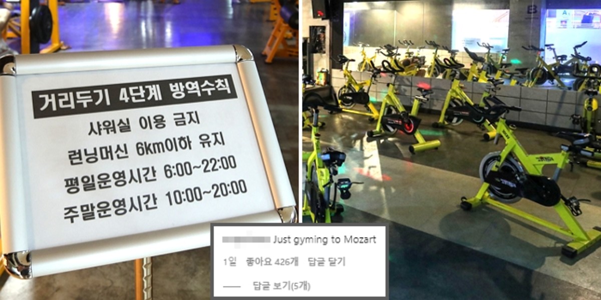 그중 정부는 헬스장에 '러닝머신 이용 시 속도 제한', '음악 속도 120bpm 제한'을 적용했다.