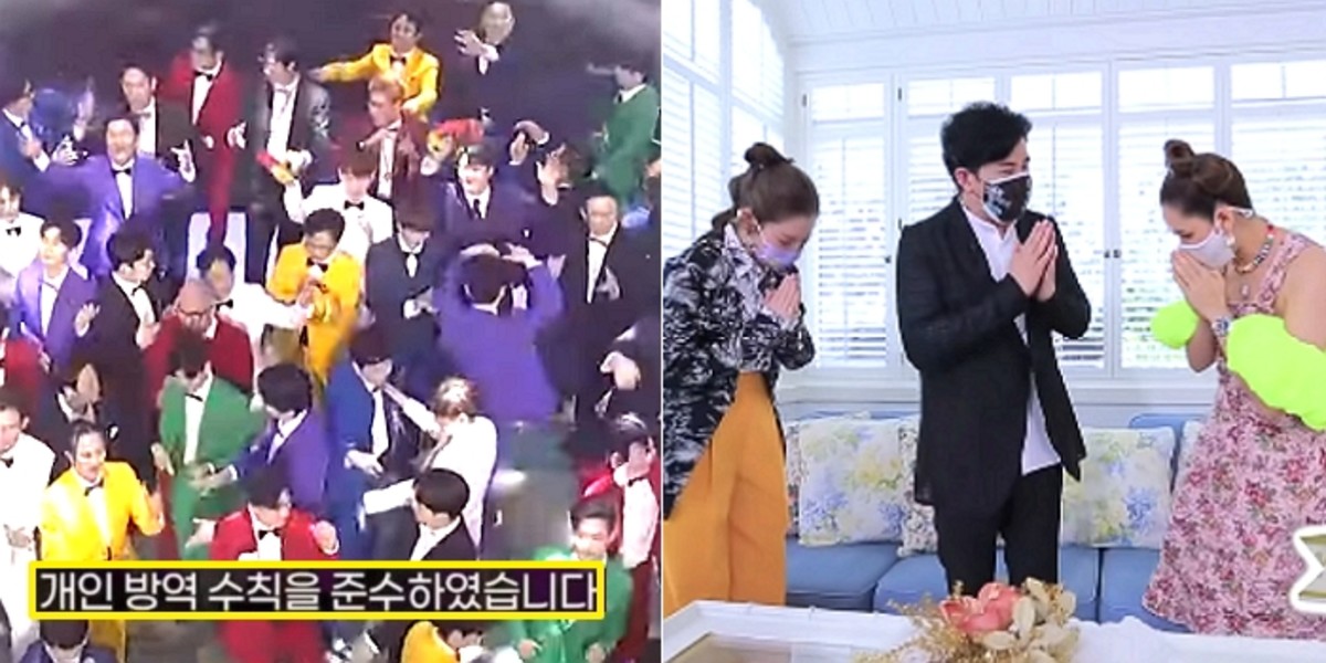 "'방역 수칙을 준수하며 촬영했습니다' 문구가 거리두기와 마스크 착용 없이도 코로나19 전파를 막아주는 거냐"