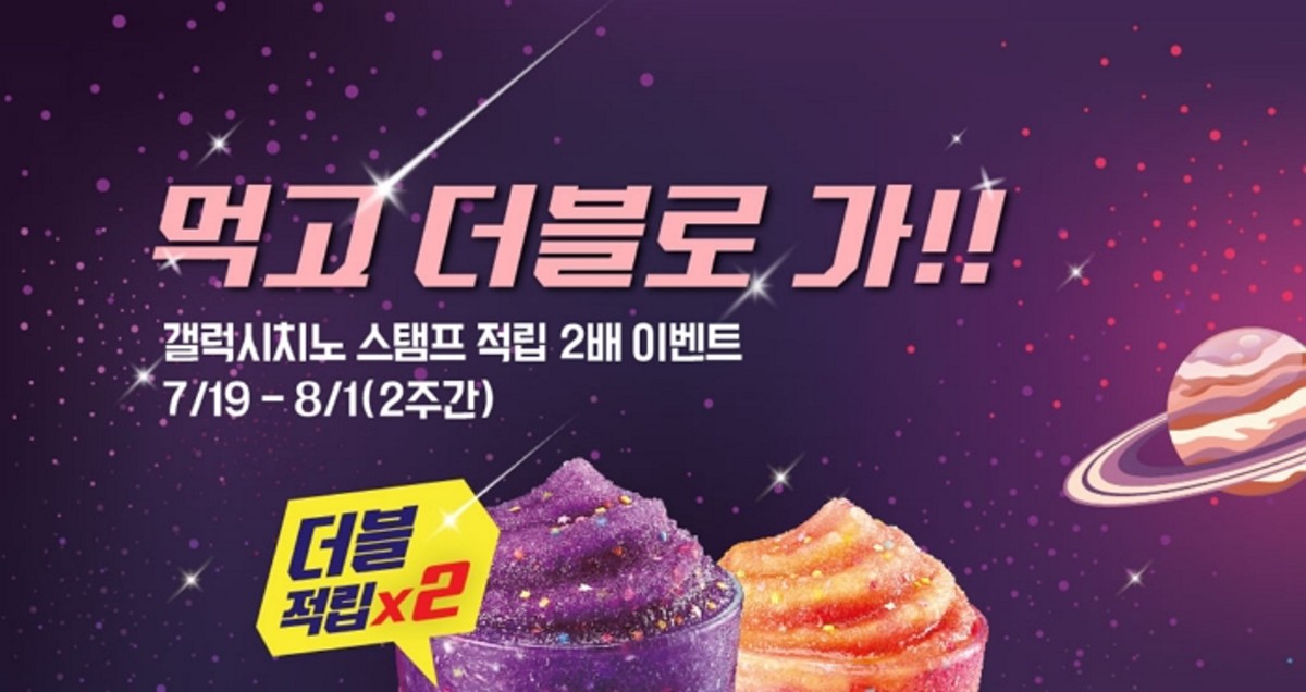 이디야커피는 8월 1일까지 신제품 '갤럭시치노' 2종을 마시면 이디야멤버스 스탬프를 2배로 적립해준다. 이디야멤버스에서 스탬프 12개를 적립한 고객에게는 아메리카노 레귤러 사이즈 Free쿠폰이 제공된다.