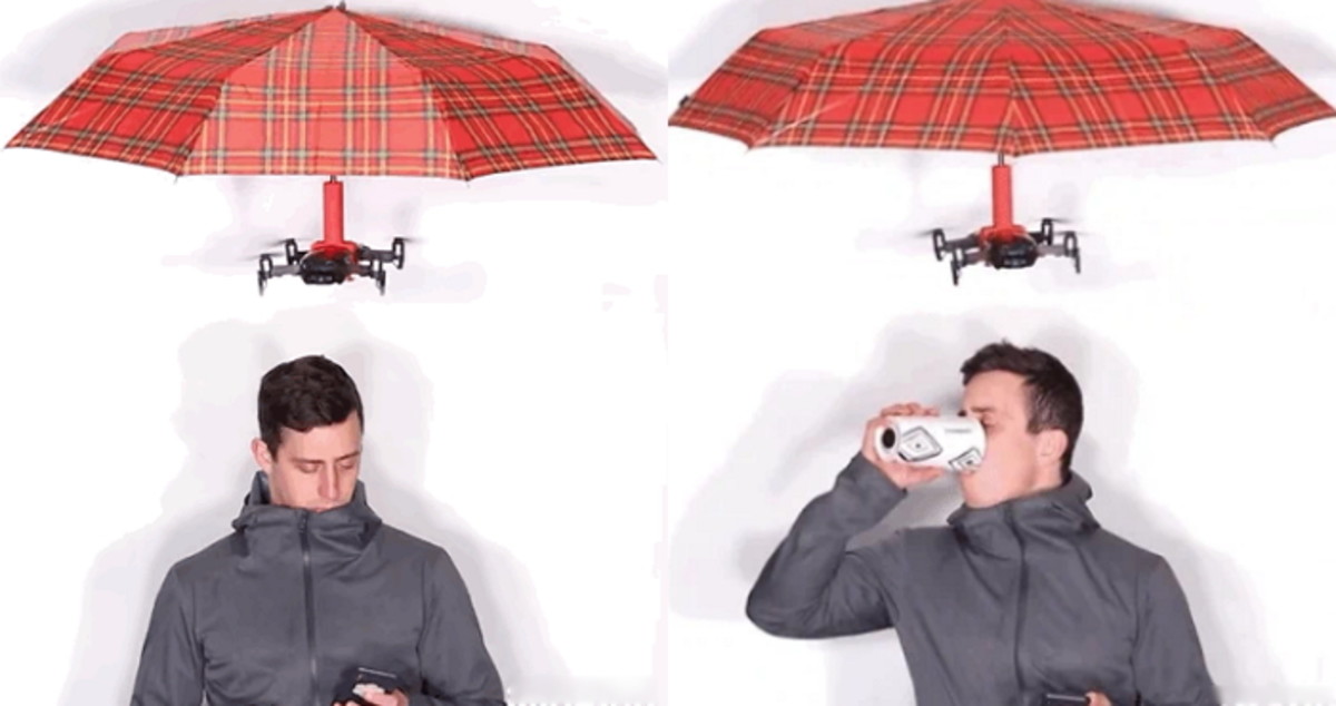 스마트폰의 애플리케이션으로 조종되는 자율 비행 우산 '드론브렐라'는 설정에 따라 사람을 자동으로 따라다니거나 높이를 바꾸는 등 조절이 가능하다고 전해졌다.