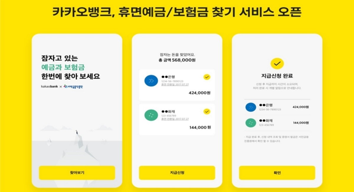 [인사이트] 전준강 기자 = 카카오뱅크는 '휴면예금·보험금 찾기' 서비스가 지난 21일 9시 오픈 이후 출시 이틀 만에 지급 금액이 11억원을 돌파했다고 밝혔다.