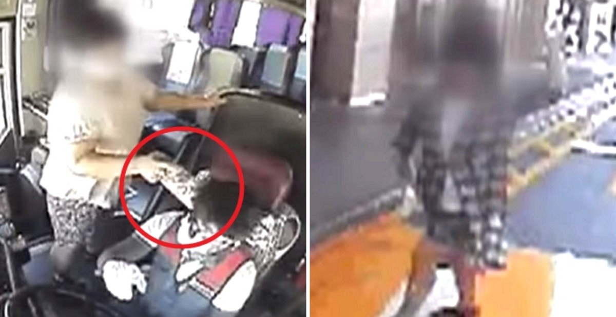 당시 버스 기사는 운전 중이라 자칫하면 큰 사고로 번질 수도 있는 아찔한 상황이었다.