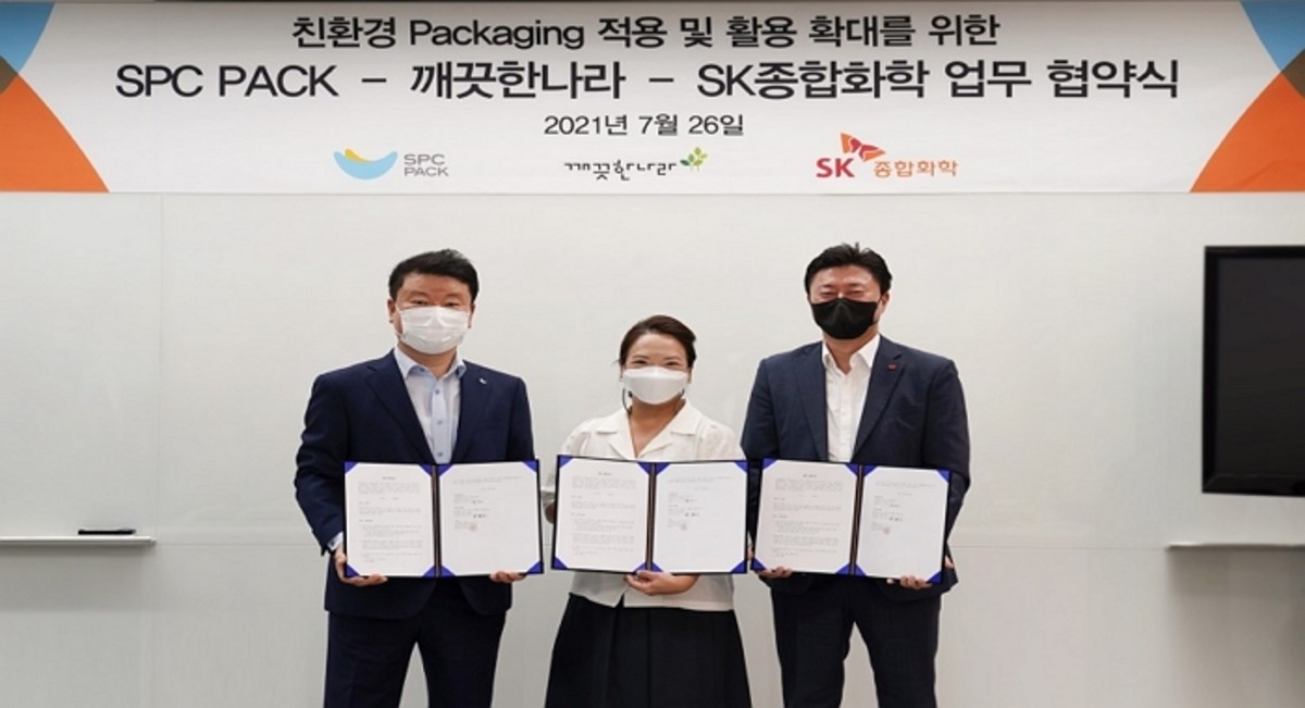 [인사이트] 김소영 기자 = 깨끗한나라가 지난 26일 서울 용산구에 위치한 깨끗한나라 본사에서 SPC 팩∙SK종합화학과 '친환경 포장재 개발 및 적용 업무협약'을 체결했다고 밝혔다.