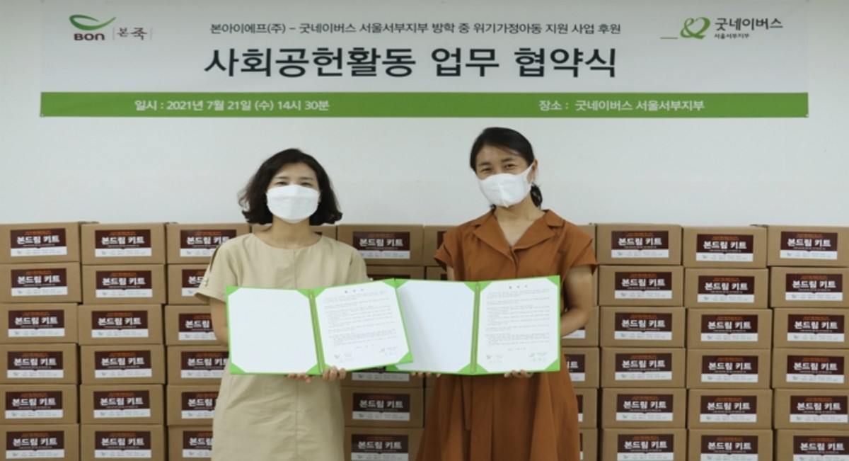 [인사이트] 김한솔 기자 = 굿네이버스 서울서부지부는 본아이에프와 함께 사회공헌 협약을 체결하고, 방학 중 위기가정 아동을 위한 후원물품인 '본드림 키트' 200개를 전달받았다고 밝혔다.