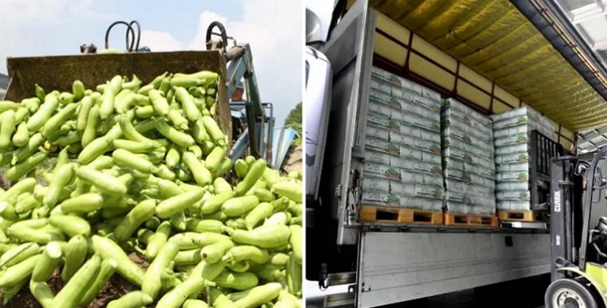 강원 화천군 화천읍 신풍리 화천농협에서 애호박 1200상자를 배송하는 모습 / 화천군