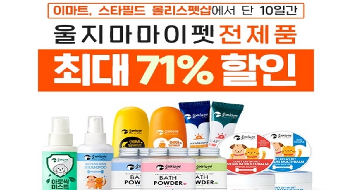 울지마마이펫은 지난 12월 이마트, 스타필드 몰리스펫 등 전국 32개 매장에 입점하여 치카치약 시리즈, 프리미엄 멀티밤 2종, 파우더 고체솝 3종, 개스팟 등을 포함한 자사의 베스트셀러 18종을 판매하고 있다.