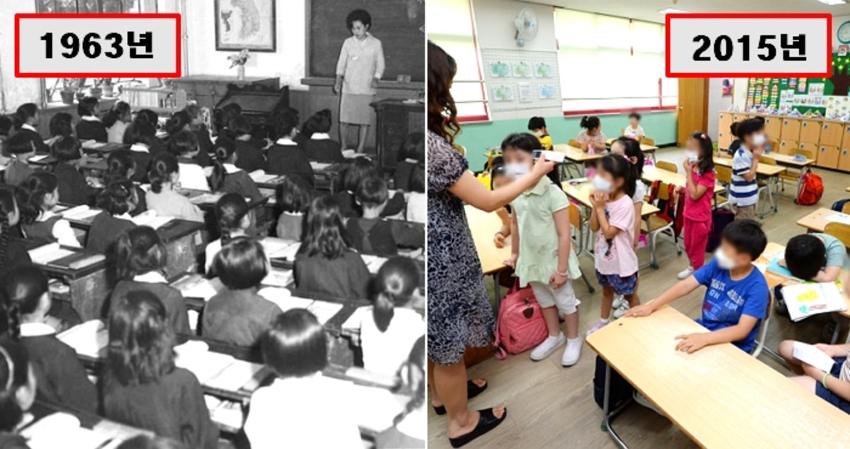 1960년대와 최근 초등학교 교실의 사진을 비교하면 더욱 명확하다.
