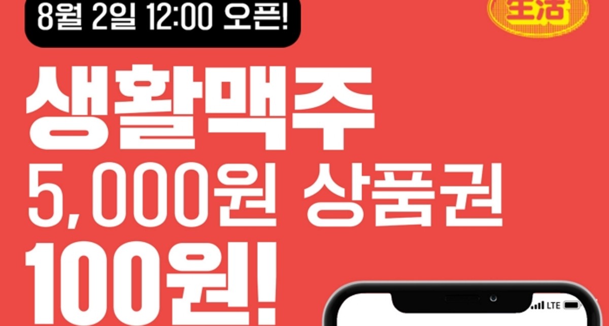 생활맥주 5천 원 모바일 상품권은 8월 2일 12:00부터 8일 24:00까지 7일간 98% 인하된 금액인 100원에 판매된다. 만 19세 이상이라면 누구나 생활맥주의 네이버 스마트 스토어인 '생활맥주 생쑈'에서 구매 가능하다.