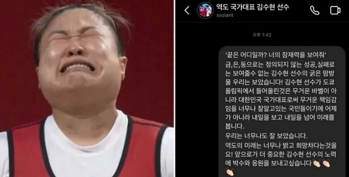 아쉬운 판정으로 용상에서 기록을 내지 못해 실격 판정을 받은 김수현은 자신을 향한 팬의 응원 메시지에 정성스럽게 화답했다.