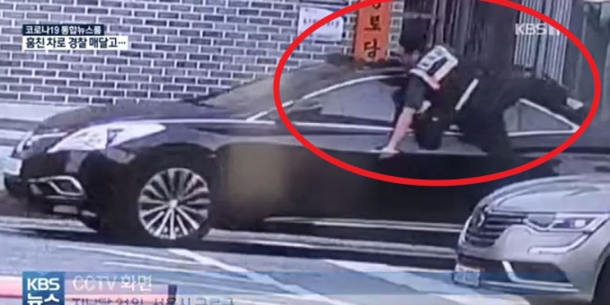 운전자는 신고를 받고 검문에 나선 경찰의 정지 명령을 무시했으며, 경찰관을 매단 채 도로를 약 1km 질주한 것으로 확인됐다.