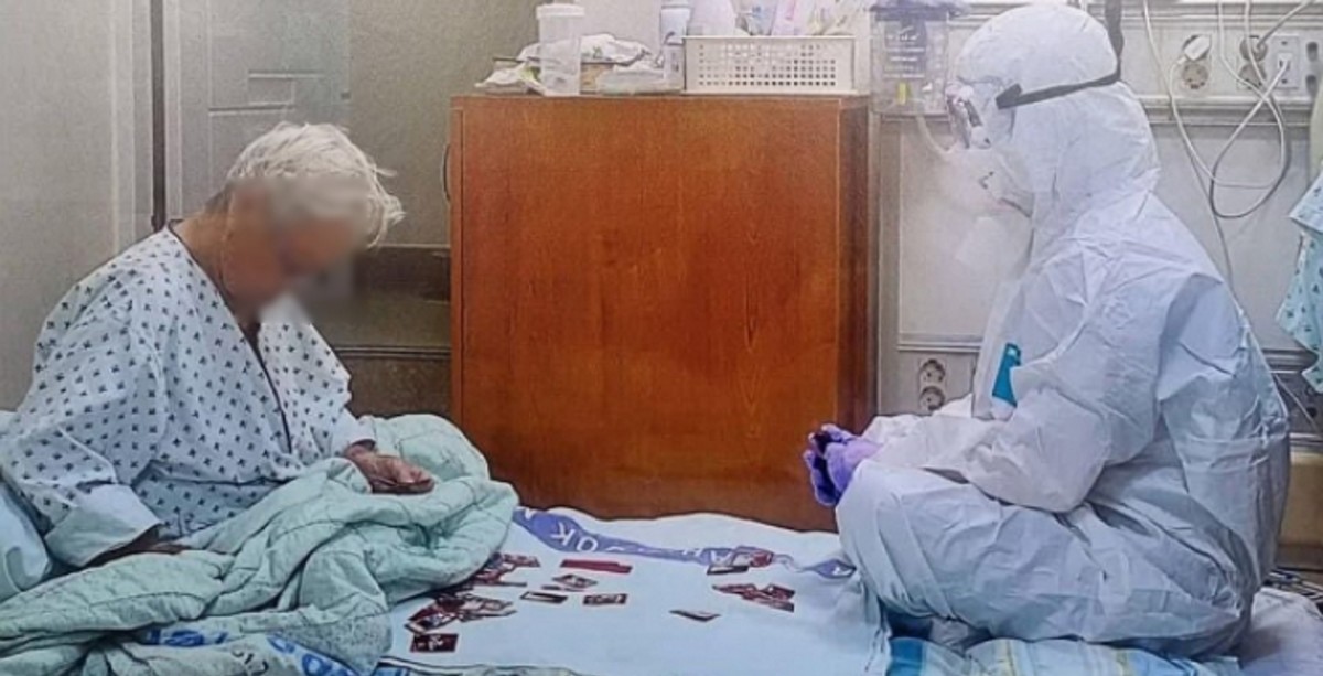 지난 1일 트위터에 '이 사진 너무 슬프다'라는 글과 함께 공개된 사진 한 장에는 외로운 할머니를 위해 의료진이 함께 앉아 화투를 치고 있는 모습이 담겼다.