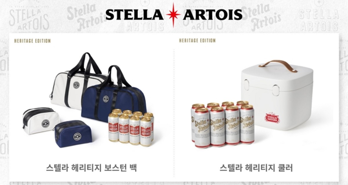 이번 '헤리티지 패키지'는 야외 활동에 유용한 '쿨러'와 '보스턴백' 총 2종으로 구성됐다. 각 패키지에는 스텔라 아르투아의 600년 양조 역사를 현대적으로 디자인한 '헤리티지 에디션' 500mL 8캔이 포함되어 있다.