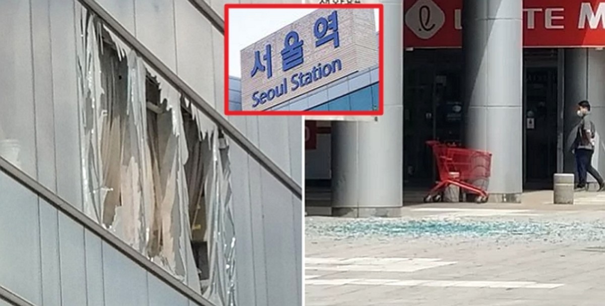 공개된 사진 속에는 목격자들이 찍은 서울역의 모습이 담겼다. 많은 사람이 지나다니는 보도에는 건물에서 깨진 유리창 파편들이 널브러져 있다.