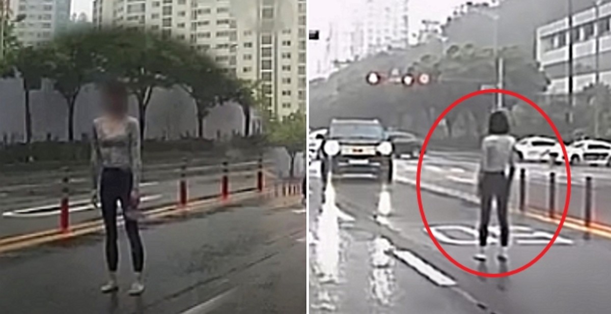 [인사이트] 조세진 기자 = 차가 쌩쌩 달리는 서울 마포구의 도로 한복판에 서있는 여성의 모습이 공개돼 누리꾼들의 공분을 사고 있다.