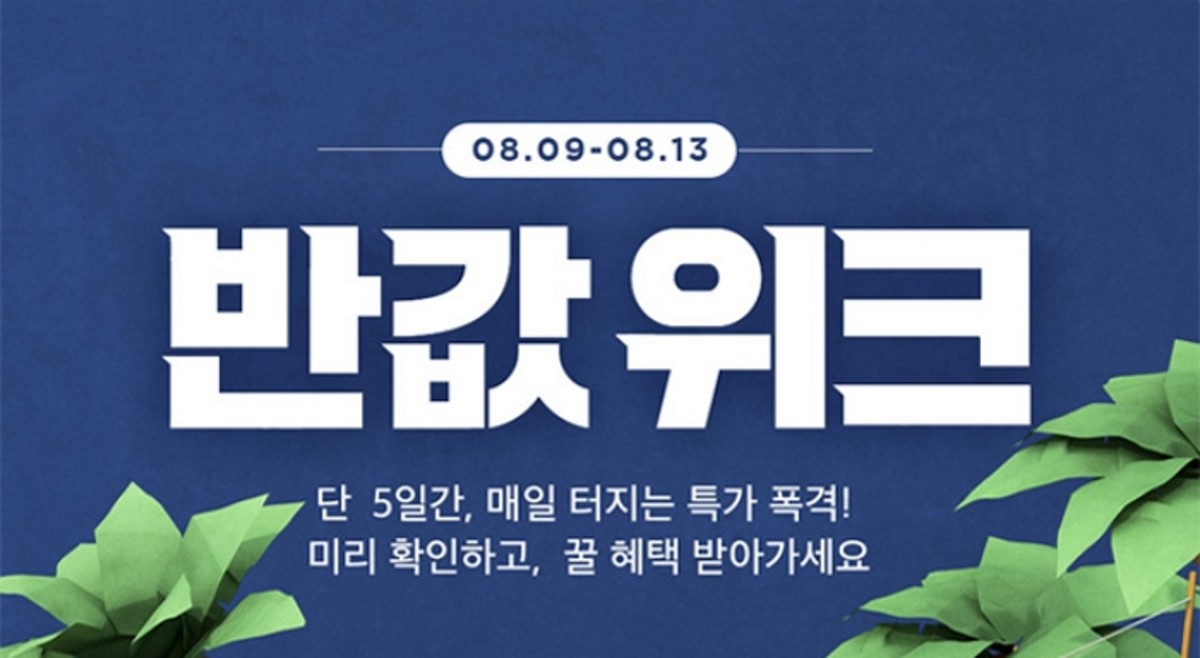 이랜드몰의 '반값위크'는 오는 9일부터 13일까지 진행되며 매일 인기브랜드 반값쿠폰, 선착순 반값상품 등을 제공하는 '릴레이 반값' 행사와 인기 브랜드의 상품을 초특가에 제공하는 '극한특가', 라이브 방송을 통해 인기 브랜드의 상품에 이랜드몰 단독 혜택을 담아 선보이는 '라이브딜' 등 다채로운 이벤트로 구성된다.