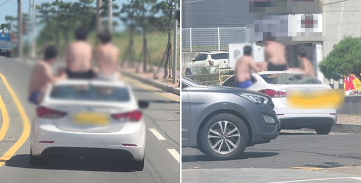 [인사이트] 김한솔 기자 = 울산의 한 해수욕장 인근 도로에서 남성 3명이 상의를 탈의한 채 달리는 차량 위에 올라가는 등 주민들의 눈살을 찌푸리게 만들었다.