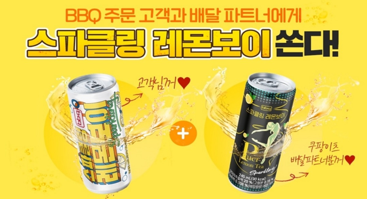 쿠팡이츠 앱에서 BBQ 전 메뉴 주문 시 해당 매장에서 스파클링 레몬보이 2캔을 제공, 1캔은 픽업하는 배달 파트너에게 1캔은 주문 고객에게 전달된다.