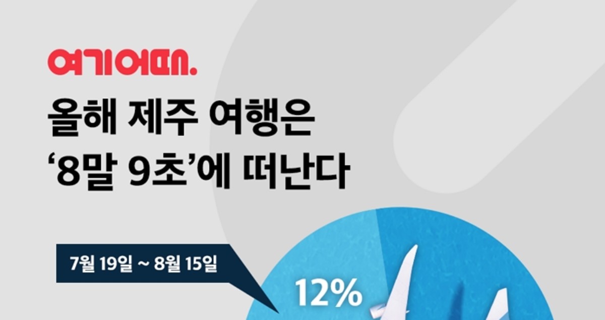 대한민국 대표 종합숙박·액티비티 플랫폼 여기어때의 제주 왕복 항공권(7~10월 출발) 실적에 따르면, 전체 예약 건수 중 8월 23일~9월 12일 출발하는 티켓 비율이 33%를 차지했다고 밝혔다.