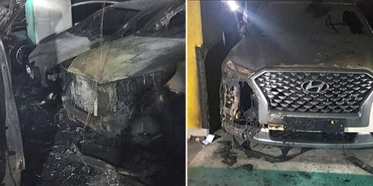 대다수의 차량들이 처참한 잿더미가 된 모습이었으며 일부는 차체가 다 타버리고 뼈대만 남아 형태를 알아보기 어려운 지경에 이르렀다.