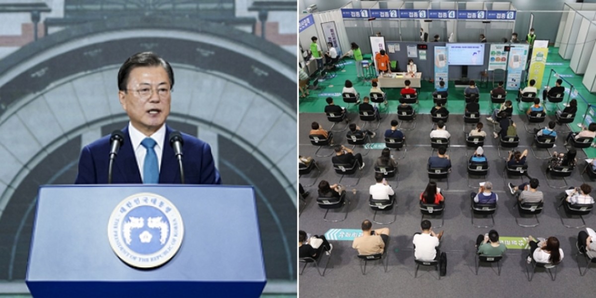 이어 "10월이면 전 국민의 70%가 2차 접종까지 완료할 것"이라며 "목표 접종률을 더욱 높이겠다"고 전했다. 아울러 델타 변이 확산으로 인한 4차 유행도 이겨내겠다고 공언했다.