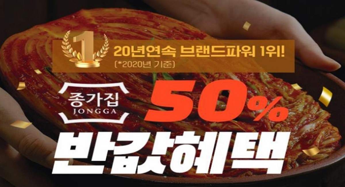 자세한 내용은 정원e샵 홈페이지 내 '종가집 50% 반값 혜택 기획전' 페이지에서 확인할 수 있다.