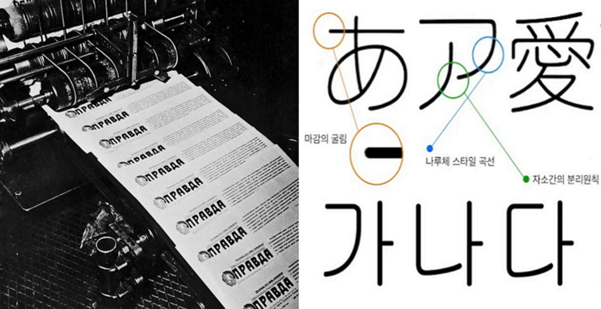 이 일본산 기계가 찍어내는 한글 서체는 일본 서체를 한글화 시킨 것이 대부분이었다.