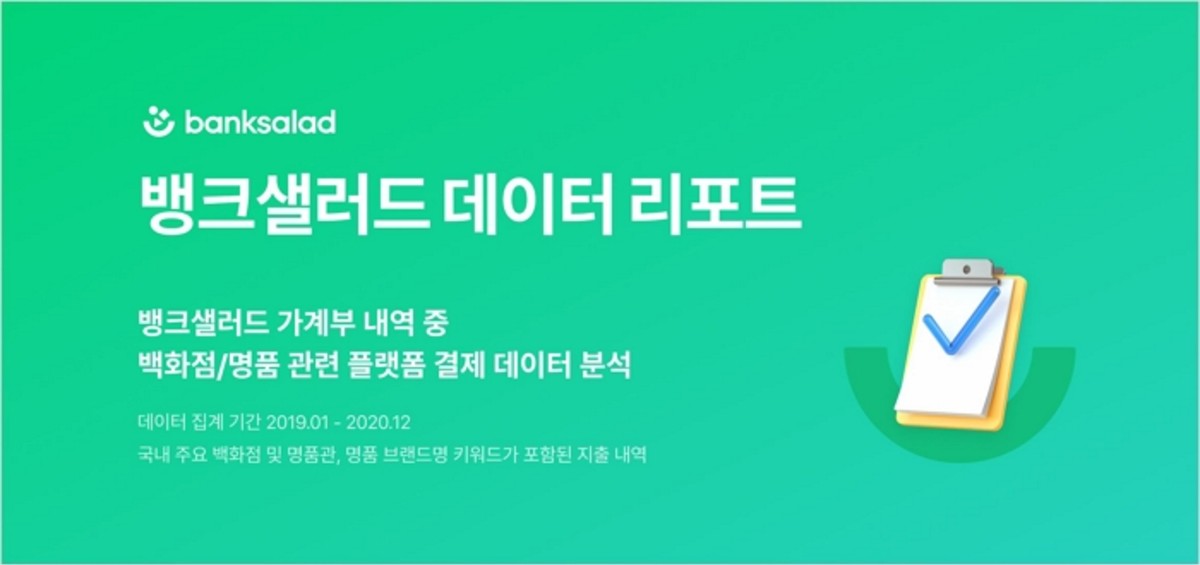 [인사이트] 박상우 기자 = 마이데이터 전문 기업 '뱅크샐러드'가 19일, 코로나블루로 인한 '보복소비' 트렌드를 확인할 수 있는 '2019-2020년 백화점 및 명품 소비 지출 분석' 결과를 발표했다.